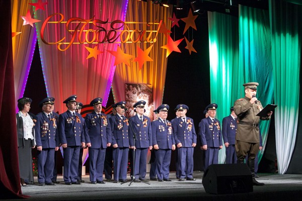 Праздничный концерт начался с выступления хора ветеранов войны и труда. В их исполнении прозвучала песня "День Победы" которую зрители слушали стоя. В концерте приняли участие музыкальные и хореографические творческие коллективы города.
