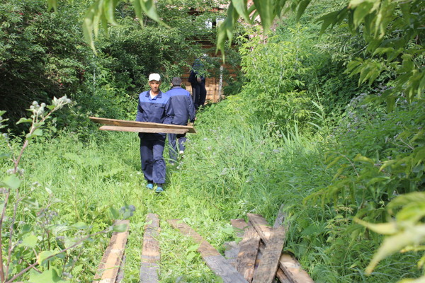 Владимир Никитин и начальник участка Сергей Гаджиев осмотрели территорию, в частности, были обнаружены кирпичные стены, уходящие в вал, которые ранее были скрыты. Главный архитектор принял решение о продолжении работ, в настоящее время подбираются специальные материалы.