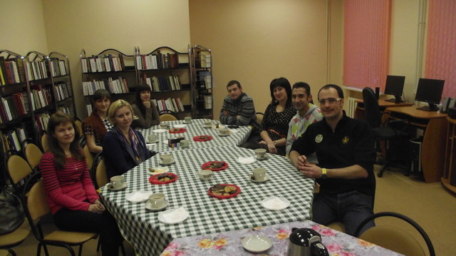 Напомним, что клуб «Окно в мир» работает на протяжении 25 лет в двух секциях — английской и немецкой и собирает людей разных возрастов и профессий, увлеченных иностранными языками. В английской группе на данный момент занимается около 20 человек, имеющих навыки англоязычного общения — библиотекари, преподаватели, работники различных учреждений, студенты и другие.