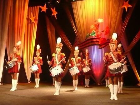 Премьера выступления с барабанами состоялась 17 января 2014 года на концерте, посвящённом освобождению города от немецко-фашистских захватчиков. В этот праздничный день девушки вышли на сцену, отбивая ритм на белоснежных барабанах. Большим сюрпризом стало появление в коллективе солиста — тамбур-мажора. Отбивая четкий ритм и ловко работая барабанными палочками, мажоретки не просто стояли на сцене, а выполняли определённую комбинацию движений, меняясь местами, создавая интересную картину.