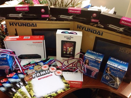 Как сообщают организаторы спортивного праздника, таких призов ещё не было в истории армспорта города Великие Луки: два телевизора, два электронные книги, две цифровые приставки (мультимедиа плеера) и другая бытовая техника, а также медали и грамоты ждут своих победителей.
