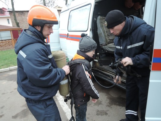 Тринадцатого ноября 2014 года Даня познакомился со спасателями поисково-спасательного отряда г. Великие Луки. В ходе экскурсии по базе он смог своими глазами увидеть технику спасателей: автомобиль дежурной группы с гидравлическим аварийно-спасательным инструментом (ГАСИ), который применяется при реагировании на ДТП, автомобиль водолазной группы, машину саперов с оборудованием для работ по обезвреживанию взрывоопасных предметов. Несмотря на малый возраст ребенку было интересно все: устройство техники, ее назначение. Он примерил водолазное снаряжение и даже почти самостоятельно попробовал разрезать небольшую трубу с помощью ГАСИ. С большим вниманием он слушал о достижениях отряда, о соревновательной деятельности подразделения.