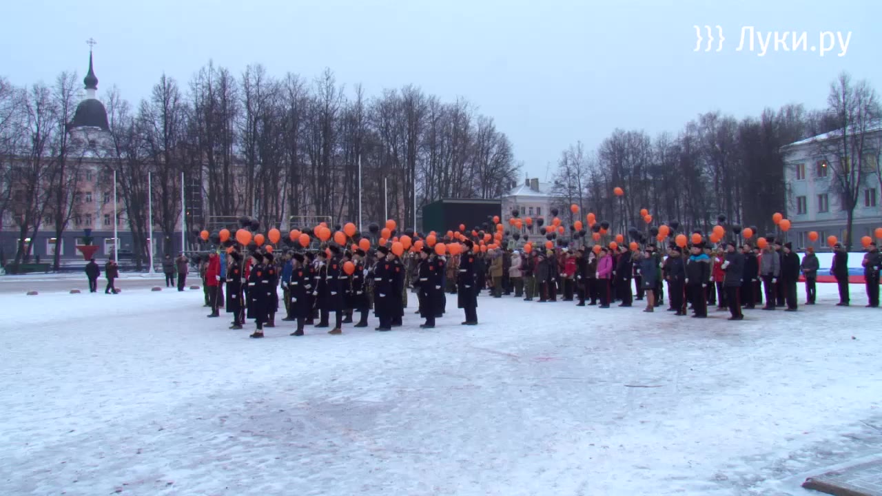 На этой торжественной ноте под гимн города великолучане выпустили в небо шары — символ воинской славы, отваги, мужества и героизма. Также на площади был развернут масштабный российский триколор.