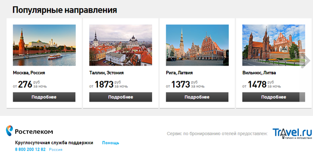 Пользователям туристического портала «Ростелекома» travel.rt.ru круглосуточно доступна служба поддержки клиентов по бесплатному номеру 8-800-200-12-82. Специалисты службы поддержки помогут подобрать и забронировать авиабилеты или отели, а также ответят на все вопросы, связанные с уже приобретенными туристическими продуктами.