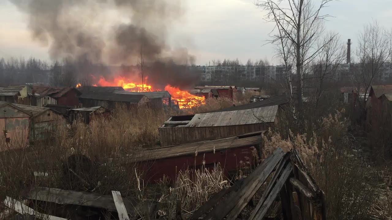 Семь гаражей горят на улице Мурманской