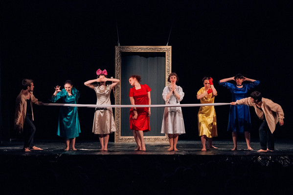 1 77 фотоВсе образы, созданные режиссером просты и понятны. Они не требуют дополнительного антуража, поэтому в спектакле практически нет декораций, разве что картинная рама, на холсте которой художник (Михаил Морозов) и его двойник (Леонид Чусов) пытаются нарисовать картину своей жизни, чтобы дать определение понятию «любовь». Они по памяти перебирают встречи с разными типами женщин, каждая из которых олицетворяет собой определенный лик любви — Игру (Яна Козлова), Вражду (Анастасия Никифорова), Искушение (Любовь Пулькина), Безумие (Татьяна Левина), Страсть (Екатерина Кудаева), Жалость (Елена Владимирова).