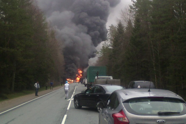 На 256-м километре трассы Петербург — Невель в Стругокрасненском районе погибли водители двух большегрузных автомобилей и машины Ford. По данным очевидцев, в огне, возникшем после аварии, сгорело три человека.