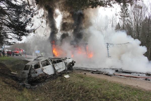 В результате ДТП произошло возгорание. Движение по данному участку трассы было временно заблокировано. Сотрудниками ГИБДД организован объезд по прилегающим дорогам.