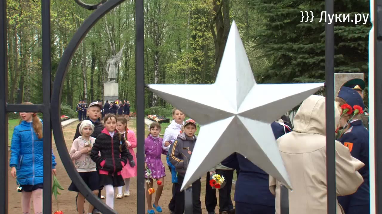 «Мы вспоминаем тех, кто погиб во имя Победы. Миллионы советских воинов разных национальностей сражались на фронтах Великой Отечественной войны за будущее человечества, мир и свободу. Многие из них похоронены здесь, на великолукской земле, за которую они отдали свои жизни. Великие Луки, являясь стратегически важным пунктом, стали в годы войны ареной жесточайших боев, примером невиданного героизма бойцов и офицеров. А Великолукская освободительная операция вошла в историю войны, как малая Сталинградская битва. За массовый героизм Великим Лукам присвоено высокое звание «Города воинской славы», город награждён орденом Отечественной войны I степени.