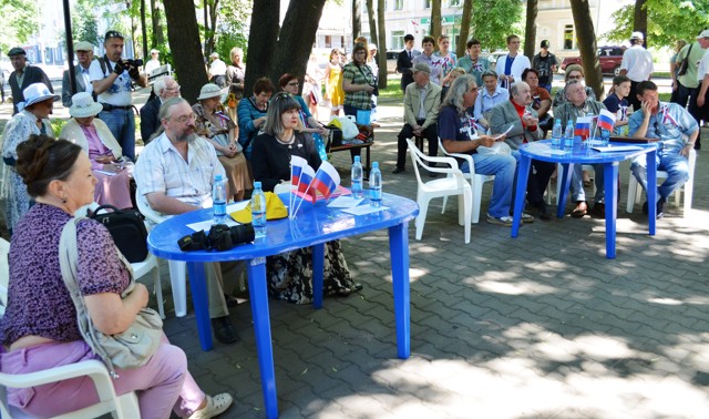 Необычное «Литературное кафе» организовала 12 июня центральная городская библиотека имени Семевского. Праздничная программа «С любовью к России» собрала в уютном тенистом сквере возле ДМШ имени Мусоргского великолукских авторов, краеведов, публицистов и других представителей культурной интеллигенции города.