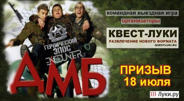«Нужно будет находить коды, выполнять различные задания. Вас ожидает интересный антураж, перевоплощения в солдат срочной службы, вы встретите героев фильма «ДМБ» Пулю, Штыка и Бомбу! Набирайте команду из 3 — 5 человек, регистрируйтесь на домене velikieluki.en.cx. Будет весело!», — анонсируют организаторы.
