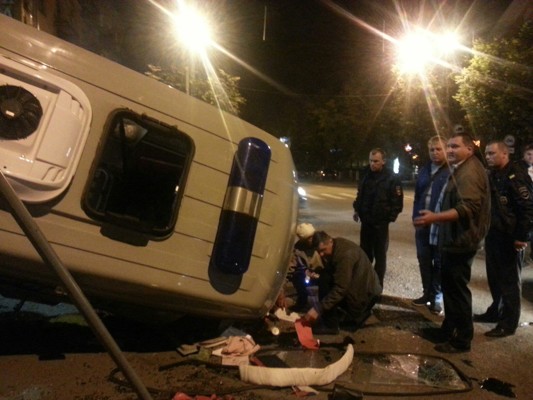 На проспекте Ленина перевернулась скорая помощь