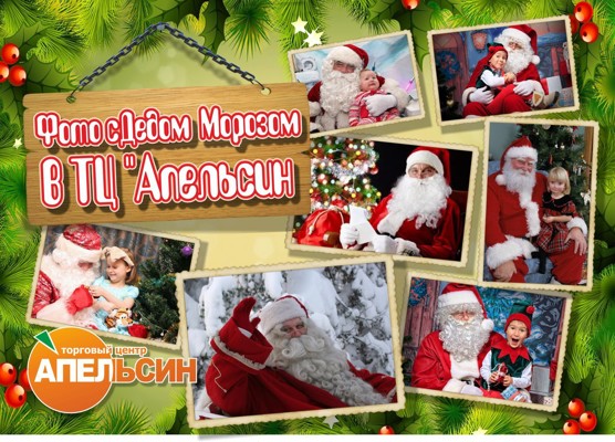 Уважаемые посетители, в преддверии праздника и на новогодних выходных в ТЦ «Апельсин» по 11 января 2016 года мы дарим возможность бесплатно сфотографироваться с веселым Дедушкой Морозом и получить не только профессиональное красочное фото в подарок, но и сладкое угощение и много ярких эмоций.