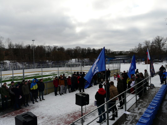 В минувшую субботу на острове Дятлинка состоялось открытие первого турнира по дворовому футболу на снегу среди команд в возрасте от 11 до 17 лет. Мероприятие, приуроченное к 73-ей годовщине освобождения Великих Лук от немецко-фашистских захватчиков, началось с минуты молчания — участники почтили память всех, кто бился с врагом на фронте, воевал в партизанских отрядах, страдал в концлагерях, без сна и отдыха трудился в тылу.