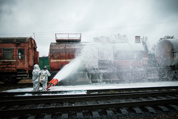 Пожарные отработали тактику при столкновении грузового состава с пассажирским поездом