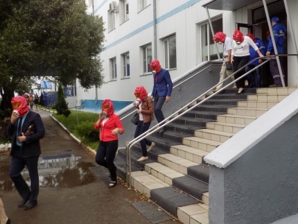 В учебно-тренировочном занятии по эвакуации приняли участие 72 работника заводоуправления под организацией аппарата управления завода, семи членов добровольной пожарной дружины, пяти сотрудников «Транснефть — Охраны».