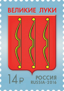 23 августа в почтовое обращение вышла марка с изображением герба Великих Лук. За основу герба города Великие Луки взят исторический герб, утверждённый в 1781 году, описание которого гласит: «В красном поле три золотые большие лука». Красный цвет является символом труда, жизнеутверждающей силы, мужества, праздника и красоты. Золото символизирует прочность, величие, интеллект, великодушие, богатство.
