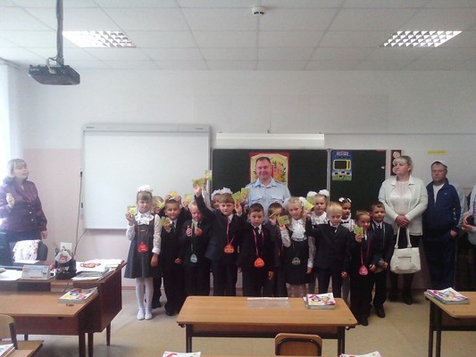Полицейские района подарили первоклассникам светоотражающие стикеры