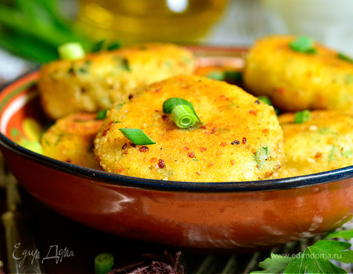 Если у вас осталось немного вчерашнего пюре, из него получатся превосходные картофельные котлеты на скорую руку. Натираем на терке 150 г брынзы, мелко шинкуем пучок петрушки или укропа и соединяем их с 300–400 г пюре. Кладем соль и специи по вкусу, вымешиваем однородную массу. Формируем из нее круглые котлеты, обваливаем их сначала в муке, затем окунаем в сырое яйцо и, наконец, обваливаем в панировочных сухарях. Жарим котлеты на скороде с раскаленным маслом с обеих сторон до румяной корочки. Фантазируя с разными добавками, вы каждый раз можете радовать родных новыми вариациями картофельников на любой вкус.