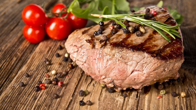 Если вы хотите получить мясо с кровью, жарьте по 2–3 минуты с каждой стороны. Для хорошей прожарки понадобится 7 минут.После этого заверните мясо в фольгу на 10 минут, чтобы сок распределился внутри. Классический стейк готов.
