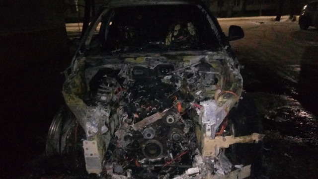 В результате пожара выгорел моторный отсек, салон автомобиля. Предварительная причина пожара — поджог.