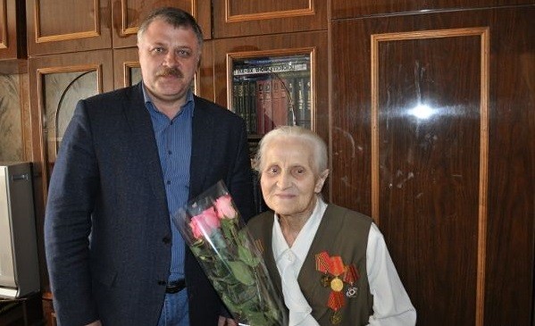 Депутат городской думы Дмитрий Кравченко поздравил Лидию Вишнякову с 95-летием