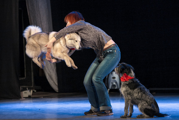 Родезийский риджбек, джек-рассел-терьер, цвергпинчер, западносибирская лайка, пудель, дратхаар и другие не менее представительные особы сорок минут демонстрировали номера с цирковыми элементами. Змейка, восьмерка, прыжки через кольца — этим собакам было чем удивить зрительный зал. Примечательно, что выходили они как в «индивидуальном зачете», так и групповых номерах.