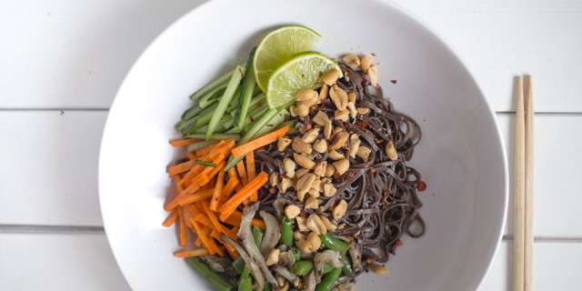 Для начала определитесь с видом лапши, который будете использовать. Сгодится как соба, так и более распространённая рисовая или бобовая лапша, а также лапша рамен.
