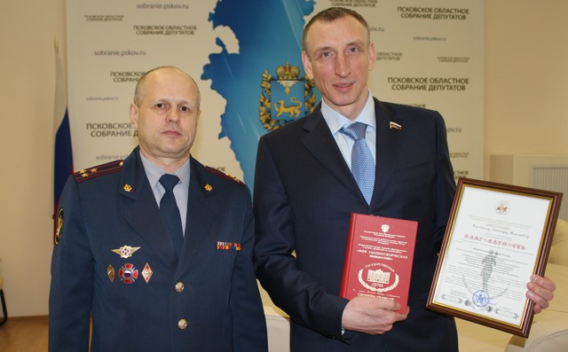 Такая инициатива не осталась незамеченной на федеральном уровне, и тому подтверждение — благодарственное письмо от Общероссийской общественной организации «Национальная система развития научной, творческой и инновационной деятельности молодежи России «Интеграция», которое начальник Псковского филиала академии Юрий Панин передал депутату Государственной думы РФ Александру Козловскому.