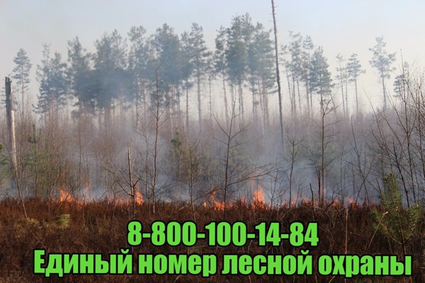 В случае обнаружения лесного пожара или природного пожара угрожающего лесам, просьба сообщить на прямую линию лесной охраны по телефону: 8-800-100-14-84. Звонок бесплатный, режим работы – круглосуточно.