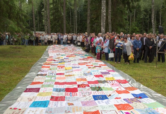 Жители трех стран, несмотря на разделяющую их границу, хором исполнили песню военных лет «Катюшу». После была отслужена заупокойного лития в часовне преподобного Сергия Радонежского, возведенная три года по инициативе России и Беларуси для поминовения павших в годы Великой Отечественной войны.