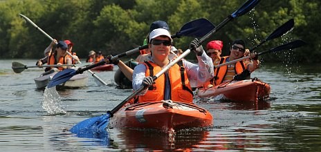 - 9:30 — прибытие на место в деревню Стуканы, сборка байдарок, инструктаж поведения на воде, обучение начальным навыкам гребли.