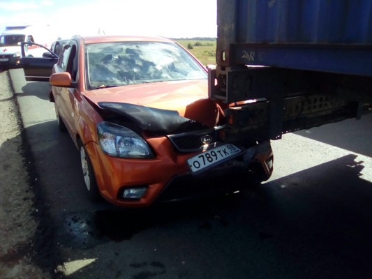 После этого «Киа Рио» врезалась в полуприцеп Schmitz стоящего впереди автомобиля ДАФ под управлением мужчины 1977 года рождения.