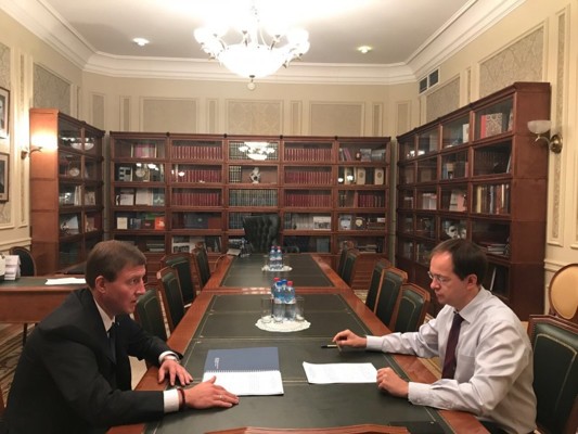 В Москве состоялась встреча губернатора Псковской области Андрея Турчака с Министром культуры Российской Федерации Владимиром Мединским. Губернатор рассказал Министру, что завершилась реконструкция великолукского драматического театра, поблагодарил его за поддержку проекта и пригласил на открытие театрального сезона, которое состоится в октябре. Глава Минкульта пообещал приехать.