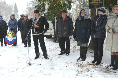 Выступая с приветственным словом, Денис Покивайлов поблагодарил поисковый отряд «Высота» за их благородную работу по увековечению памяти погибших, за появившуюся возможность вычеркнуть своего прадеда — рядового Покивайлова Василия Ивановича из списка без вести пропавших и приехать к нему на могилу. Вместе с Денисом Александровичем из г. Балашов Саратовской области на траурный митинг приехали его супруга и отец — Александр Покивайлов.