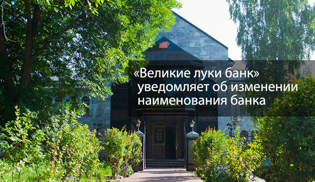 «Великие Луки банк» объявил об изменении наименования