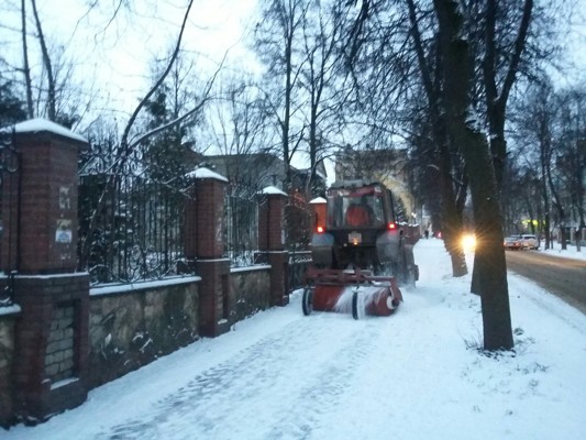 Сегодня, 30 ноября, на улицы Великих Лук вышли первые снегоуборочные машины. С раннего утра коммунальщики убирают снег с пешеходных зон. Так, например, спецтехника уже прошла по улицам Льва Толстого и Некрасова.