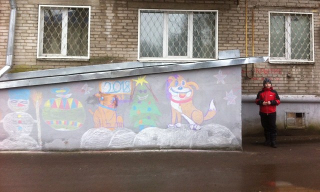Во дворе дома 23/10 по проспекту Ленина жители украсили елку, а затем решили разукрасить рисунками, посвященными Новому году, и сам дом.