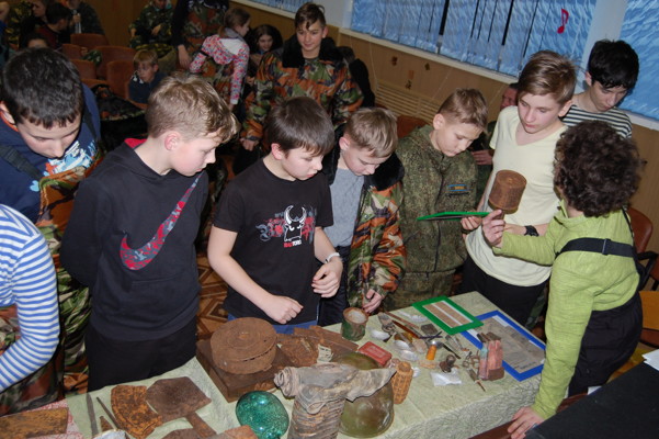В завершение встречи участники смогли ознакомиться с предметами, найденными на местах боев. О находках курсантам рассказали Роман Никитин и Валерий Игнатенков.