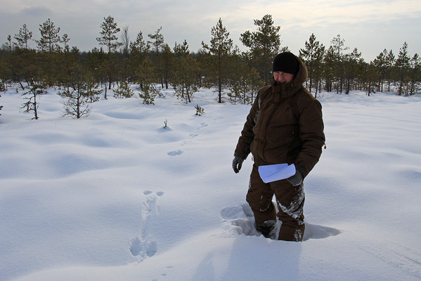 В этом году учеты прошли сразу после установления устойчивого снежного покрова, на котором можно различить следы. Маршруты располагаются вблизи границы верхового болота и лесной зоны, так как именно здесь зимой обитатели заповедника проводят большую часть времени. Ежегодно маршруты остаются неизменными, что позволяет отслеживать изменения численности видов.
