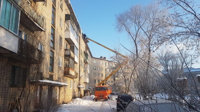 Кровли домов города продолжают чистить от снега и наледи