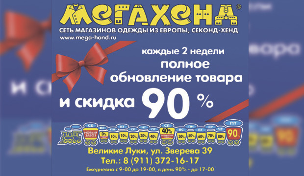Весомая доля товара, аккуратно развешенного на стеллажах — новые вещи, либо надетые 1-2 раза. Если вы хотите приобрести эксклюзивную, брендовую вещь — приходите в «Мега Хенд» в день нового поступления — обращайте внимание на таблицу скидок.