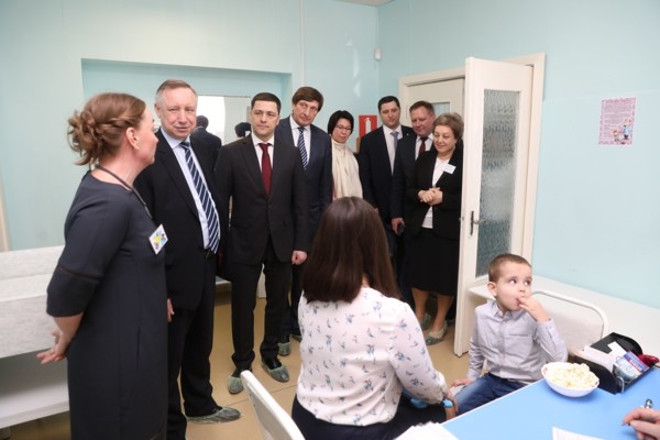 Александр Беглов и Михаил Ведерников осмотрели дневное отделение центра, где педагоги, психологи, логопеды и дефектологи проводят социальную адаптацию детей и подготовку их к обучению в обычной школе. В прошлом году 10 из 17 выпускников сели за парты общеобразовательных учреждений.