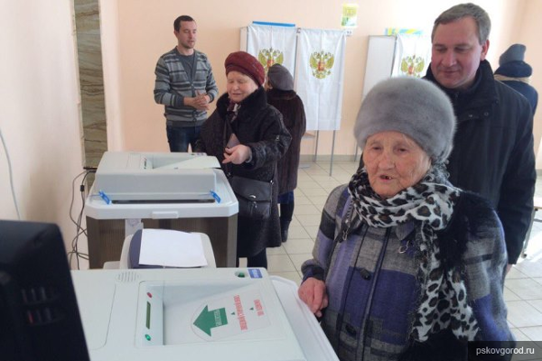 100-летняя псковичка Валентина Майорова приняла участие в выборах Президента РФ