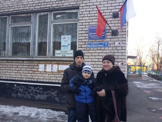 Великолучанин, представившийся Александром, пришел сегодня на избирательный участок с женой и маленьким сыном.