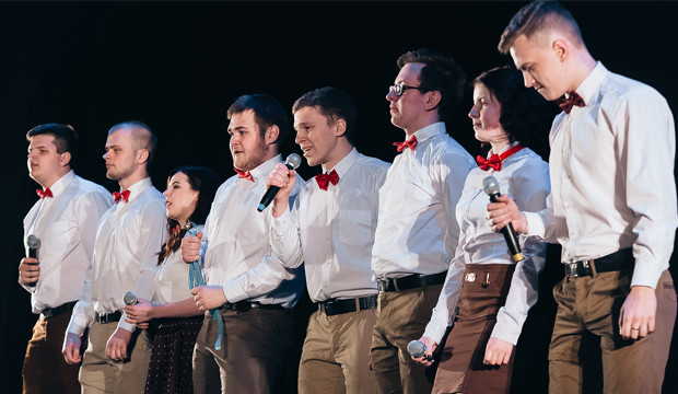 Прекрасное впечатление от номера «камней» испортили выпускники ВГСХА. Ребята решили обойтись малой кровью и подогнать под цитаты классических литературных произведений современные песни. Смотрелось сие действо крайне абсурдно: фото обложки книги на экране, голос за сценой, зачитывающий текст, музыкальная композиция и минимум движений от команды, прижавшейся к стенке. Реабилитировала ребят только финальная фраза: «Не пытайтесь совместить несовместимое — Ницше и статус ВКонтакте, сборную России по футболу и Чемпионат мира, современную музыку и классику».