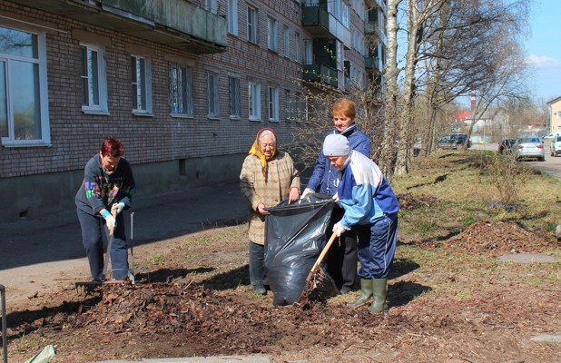 Мероприятие по уборке двора прошло по инициативе общественного советника главы города Татьяны Бондаренко. Как рассказывает великолучанка, жители дома всегда «болеют» за порядок в своем дворе. Так, сегодня от мусора и прошлогодней листвы они убрали двор, а также прилегающую территорию. Кроме того, каждый год они сажают на клумбах разные цветы, которые все лето и в начале осени радуют жильцов дома.