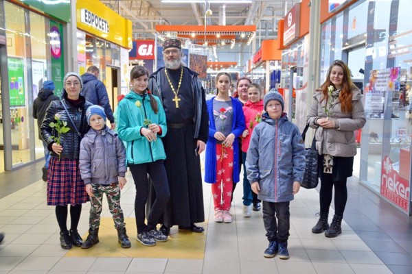 Все женщины и девушки пришедшие в этот день в храмы или встреченные волонтёрами в общественных местах, где проходили мероприятия акции, получили поздравления с праздником и цветы.