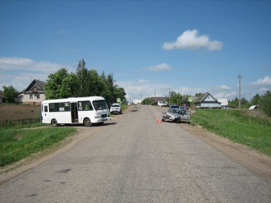 Сегодня в 13:20 в деревне Дубрава Великолукского района водитель автобуса Hyundai HD 1965 года рождения при выезде от дома #27 по улице Карьерная не уступил дорогу Hyundai Accent, за рулем которого находился парень 1996 года рождения.