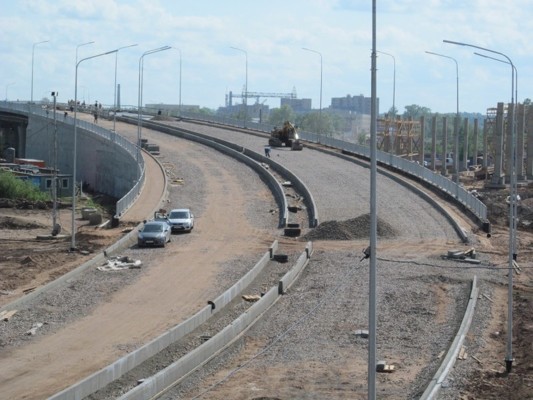 Строители занимаются также армированием плиты проезжей части правого направления основного путепровода. В настоящий момент произведено бетонирование восьми участков из одиннадцати.